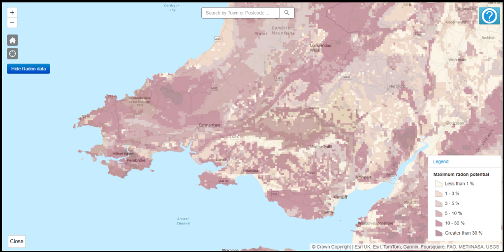 Radon levels are measured in becquerels per cubic metre (Bq/m³). Outdoor concentrations are typically low due to atmospheric dilution. However, in enclosed spaces such as homes and workplaces, radon can accumulate to dangerous levels, particularly in poorly ventilated areas. Regions in South Wales are known for higher radon levels due to their geology.